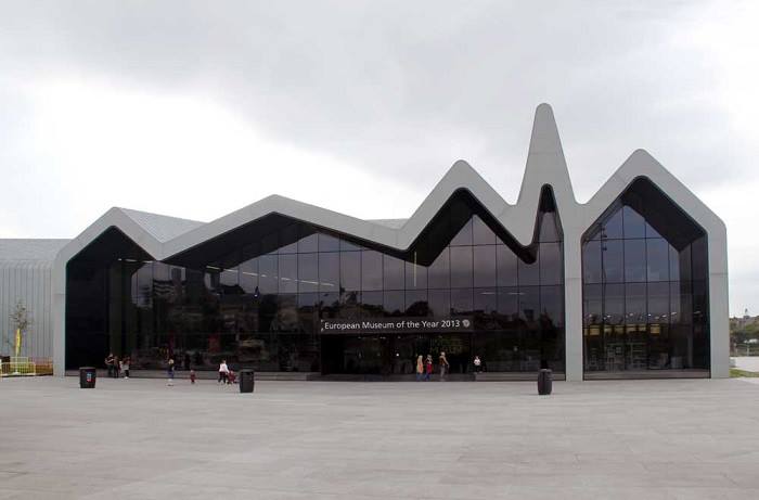 Glasgow. Il Riverside Museum of Transport simboleggia sia la nostalgia della città per il suo perso passato industriale sia l’utopia per un nuovo presente alimentato da cultura e turismo. Spostato e ampliato rispetto alla sede originaria, il ricostruito Museo dei Trasporti oggi occupa parte di un fazzoletto di terra abbandonato tra le rive del Clyde e una fragorosa superstrada a doppia carreggiata accanto all'Armadillo di Foster e alla sede della BBC di Chipperfield. Analizzando in pianta il progetto, si resta meravigliati della forma a Z della copertura che si affaccia in modo emozionante sul fiume e sulla città. E proprio per la forma sinuosa del museo, con il percorso che lo attraversa percepibile come un viaggio, il Glasgow Riverside Museum of Transport di Zaha Hadid ha vinto lo Scottish Design Award nel 2012.